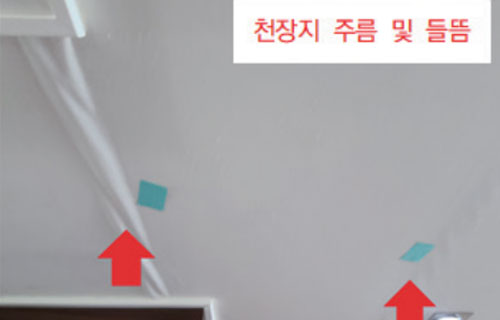 - 거실 천장에 도배 들뜸이 있으므로 하자임.