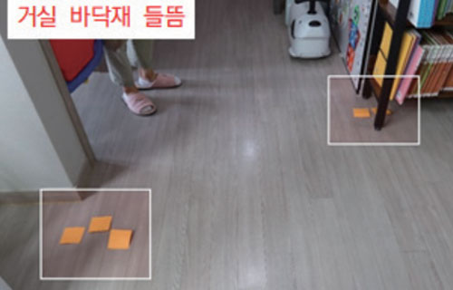 - 현장실사 결과, 거실 및 침실 강마루 바닥재 다수 들뜸(최대 높이 약 3mm)이 확인됨