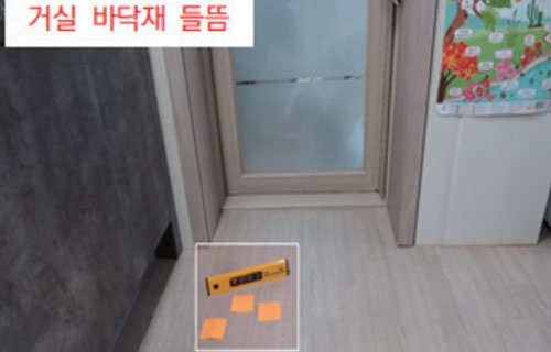 - 거실 및 침실 바닥에 들뜸 및 기울음이 있으므로 하자임.