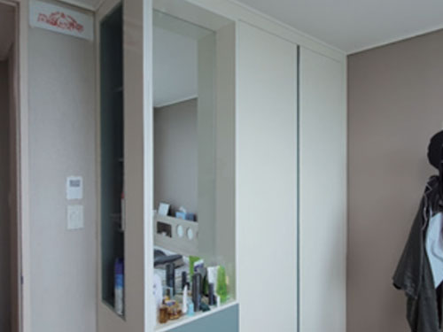 - 드레스룸 벽체에 결로가 지속 발생하여 하자 보수를 요청함.